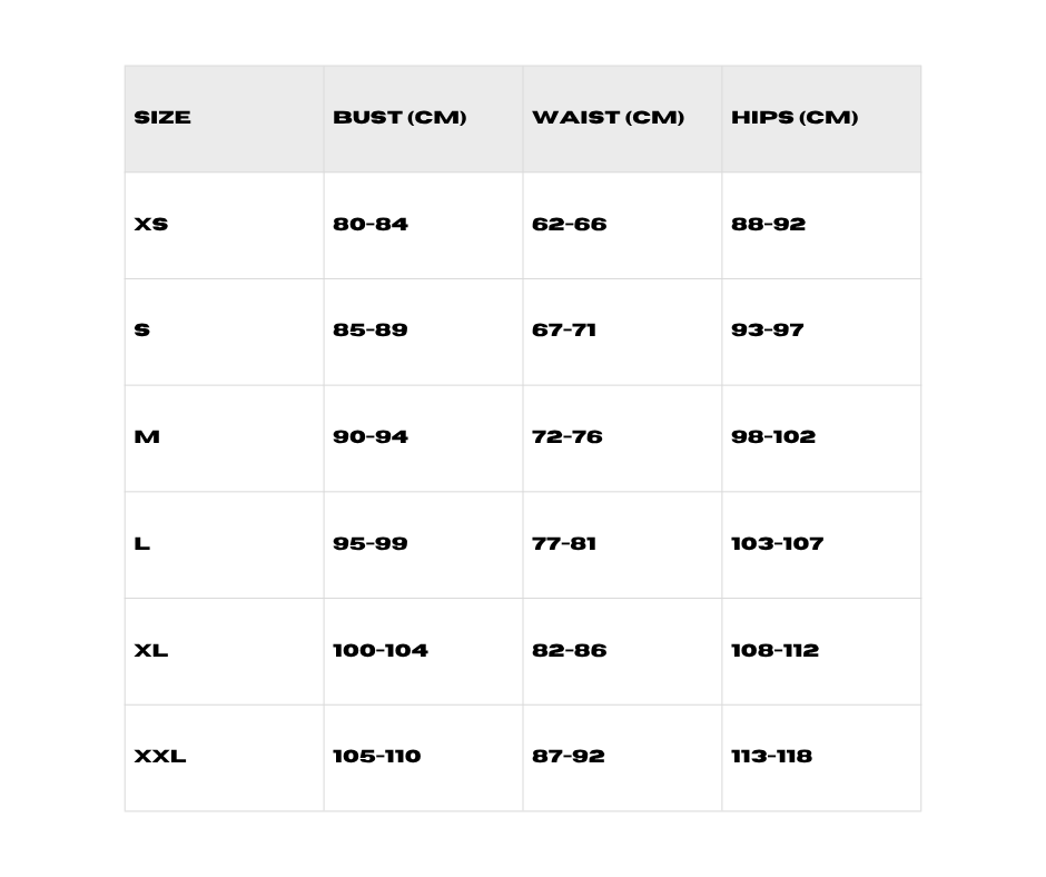 - Les mesures indiquées correspondent à votre corps, pas au vêtement.